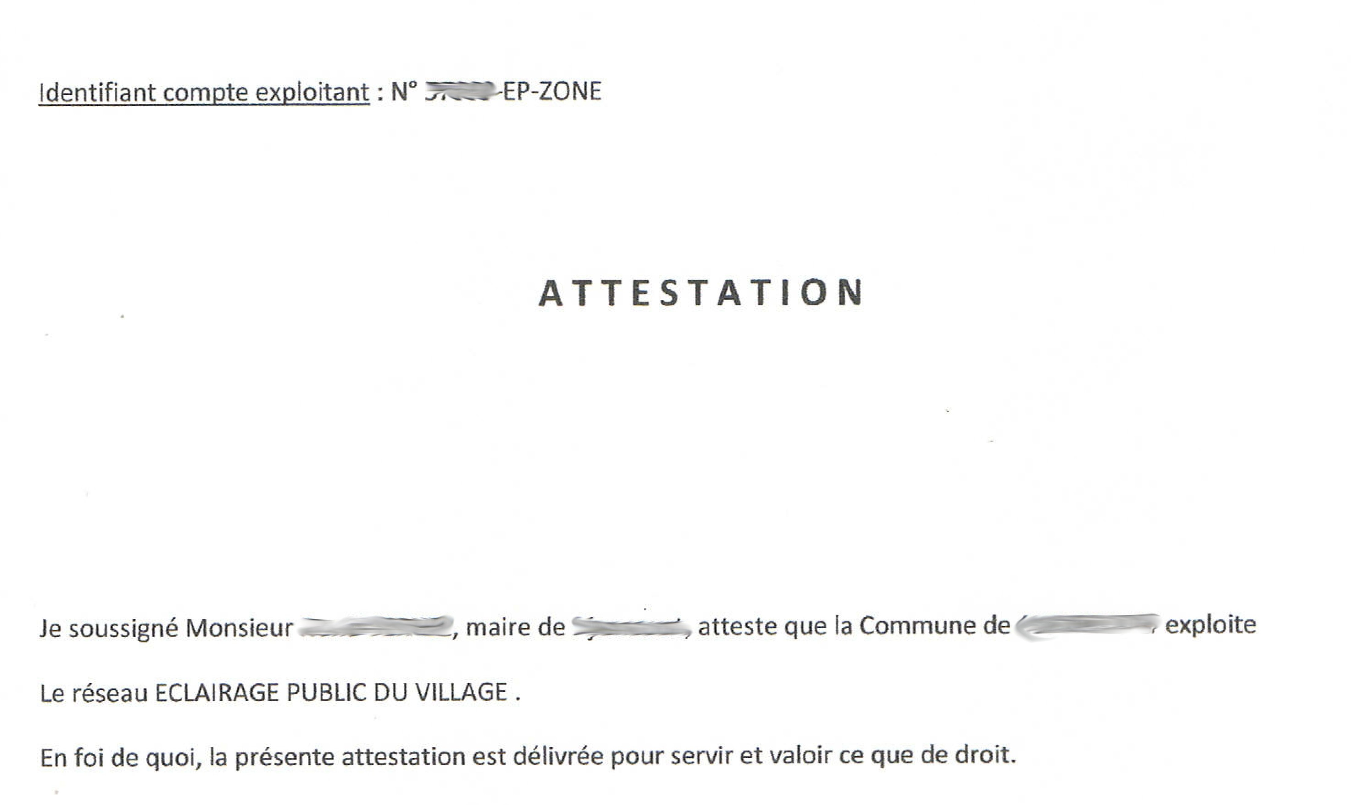Attestation à fournir pour les réseaux